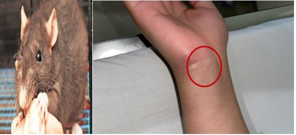 Vết chuột cắn tại cổ tay của người bệnh nhiễm Sodoku.