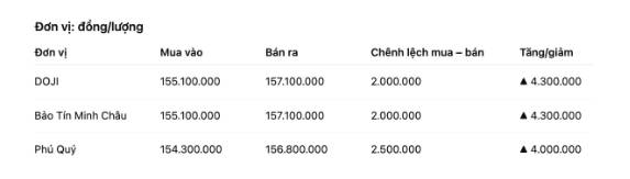 Cập nhật giá vàng sáng 6.1: Thị trường vàng trong nước ghi nhận mức tăng mạnh từ 2-4,3 triệu đồng/lượng tùy loại vàng và đơn vị kinh doanh.