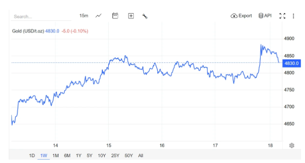 Trên thị trường quốc tế, giá vàng chốt phiên tại Mỹ ở ngưỡng 4.830 – 4.831 USD/ounce. Động lực chính cho đà tăng đến từ thông tin mở cửa trở lại eo biển Hormuz và các dự báo kinh tế mới nhất. Việc IMF cắt giảm dự báo tăng trưởng cho các quốc gia vùng Vịnh, đặc biệt là sự suy giảm 6,1% của Iran, đã tạo ra môi trường đầu tư đầy bất ổn, thúc đẩy dòng tiền trú ẩn vào vàng.