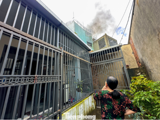 thông tin ban đầu, khoảng 8 giờ sáng ngày 22/12, vụ cháy bùng phát từ bên trong ngôi nhà và nhanh chóng lan lên các tầng phía trên, tạo thành cột khói đen dày đặc bao trùm khu vực lân cận. Ảnh: Duy Quốc