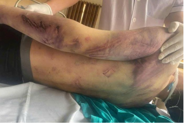 Nhiều vết bầm tím trên cơ thể học viên P.H.N. theo học tại Trung tâm Công tác xã hội Hải Hà. Ảnh: SKĐS.