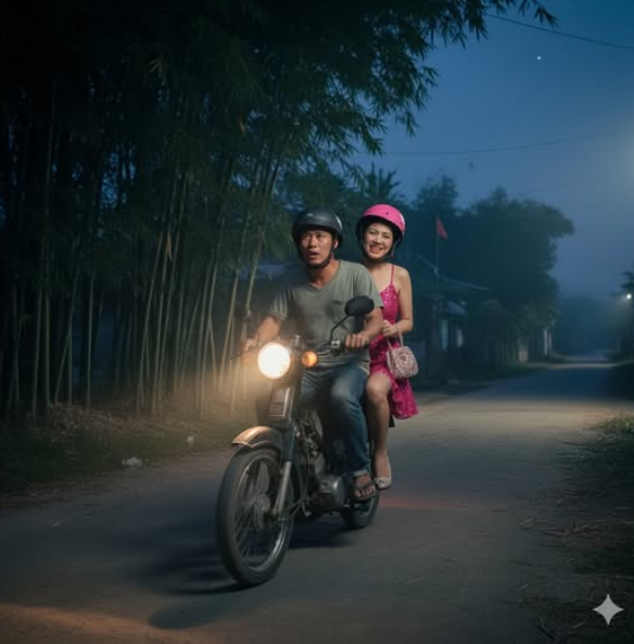 Đêm tan, tôi chở mẹ về. Qua bụi tre vàng, gió rịn mùi lá non. Mẹ bảo: “Dừng một chút.” Tôi tấp vào. Mẹ xuống, đứng trước lối vào – chỗ hôm đầu tiên mẹ gọi tôi rẽ – rồi quay lại, giọng đùa mà không hẳn đùa: “Con rể, cho mẹ rủ con vào trong đó thêm lần nữa.”