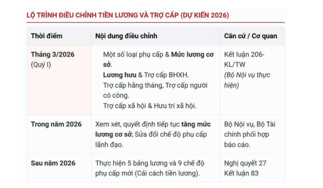 LỊCH TRÌNH ĐIỀU CHỈNH LƯƠNG 2026