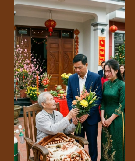 Ông cố ngồi dậy, nhìn tôi trong bộ áo dài cưới.