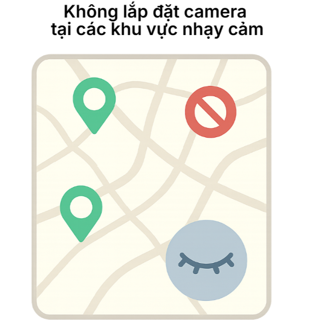 Không lắp đặt camera tại các khu vực nhạy cảm (phòng ngủ, phòng thay đồ,…) nếu như không thực sự cần thiết; hoặc sử dụng chức năng che chắn vật lý khi không sử dụng.