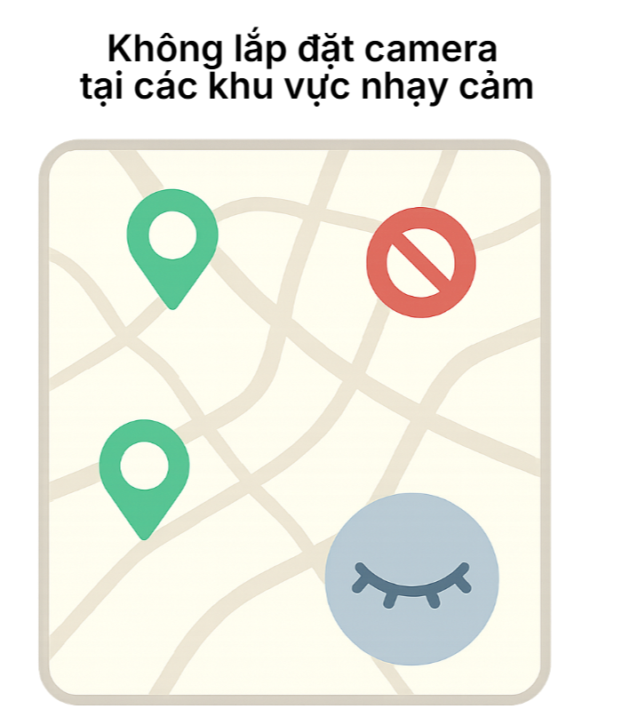 Không lắp đặt camera tại các khu vực nhạy cảm (phòng ngủ, phòng thay đồ,…) nếu như không thực sự cần thiết; hoặc sử dụng chức năng che chắn vật lý khi không sử dụng.