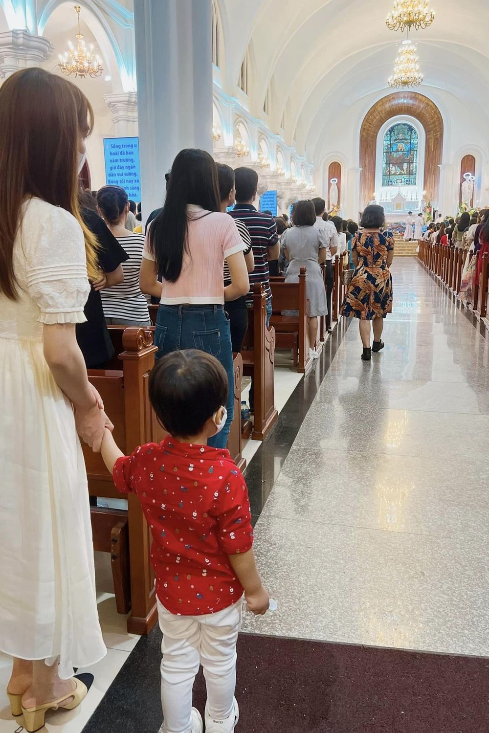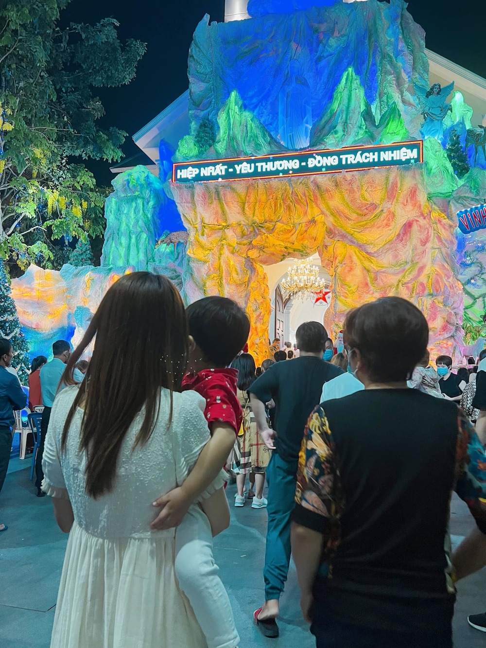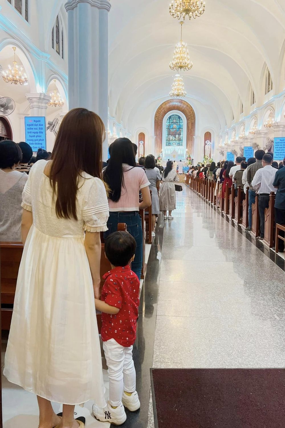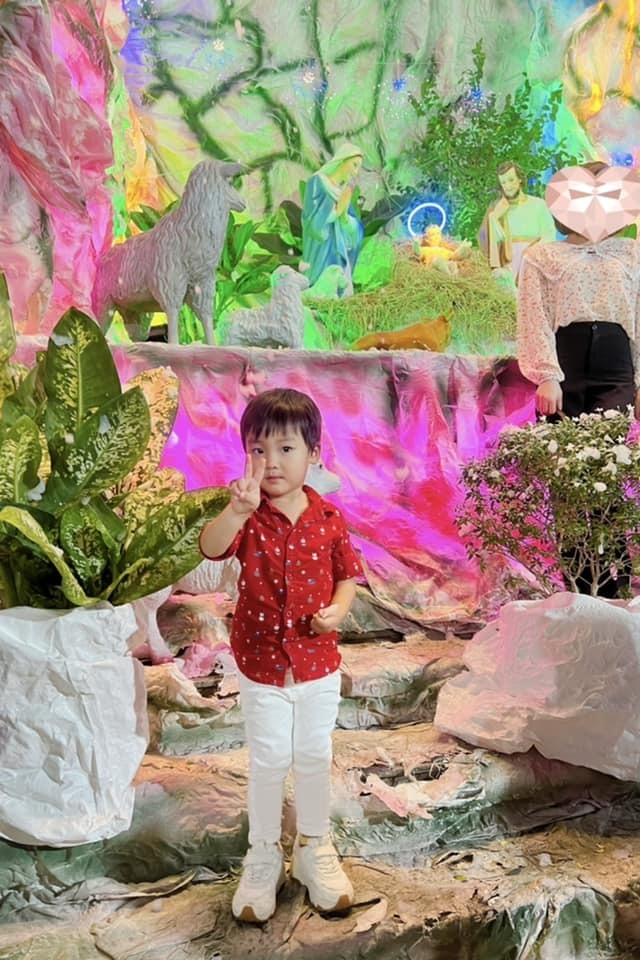 Hòa Minzy đưa con trai đến nhà thờ nhân ngày Giáng sinh. (Ảnh: FB Hòa Minzy)