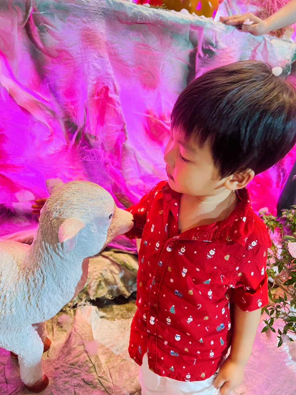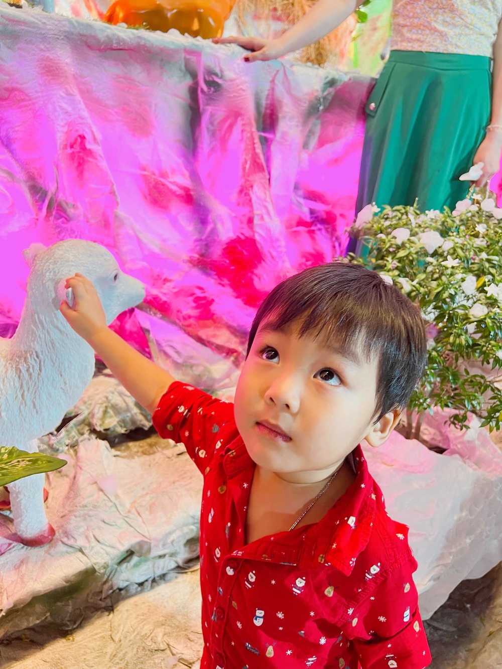 Con trai Hòa Minzy vui vẻ và hào hứng khi được vui chơi trong đêm Noel. (Ảnh: FB Hòa Minzy)
