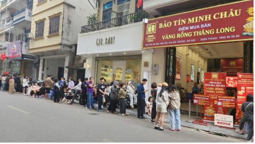 Cửa hàng Bảo Tín Minh Châu thông báo, thời điểm buổi sáng mở cửa giao dịch, cửa hàng bán ra tối đa 2 lượng vàng nhẫn/người. Khách hàng mua từ 3 chỉ trở lên sẽ nhận giấy hẹn đến ngày 6/4 quay lại nhận vàng. Tuy nhiên, do số lượng khách hàng đến mua quá lớn, cửa hàng khoảng 10 giờ phải thông báo tạm hết hàng, phải dừng bán.