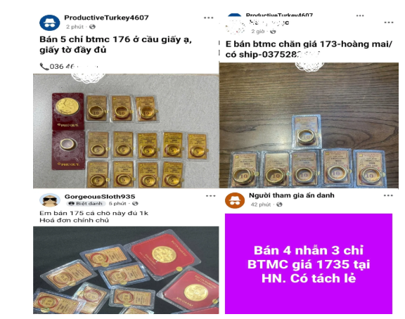 Đáng chú ý, thị trường chợ đen hôm nay 21/3 lại “dậy sóng” do tình trạng khan hiếm của các sản phẩm vàng gia tăng. Trên các hội nhóm Facebook, hàng loạt thông tin rao bán, tìm mua xuất hiện với mức giá “trên trời”. Cụ thể, giá vàng nhẫn Bảo Tín Minh Châu bán ra giao động từ 173 – 176 triệu đồng/lượng, cao hơn giá niêm yết bán ra tại cửa hàng từ 900.000 – 3,9 triệu đồng/lượng và cao hơn giá niêm yết mua vào từ 3,9 – 6,9 triệu đồng/lượng.