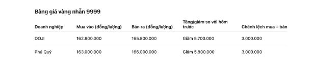 Giá vàng nhẫn trong nước hôm nay