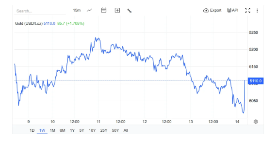 Giá vàng thế giới chốt phiên tuần trên 5.100 USD/ounce