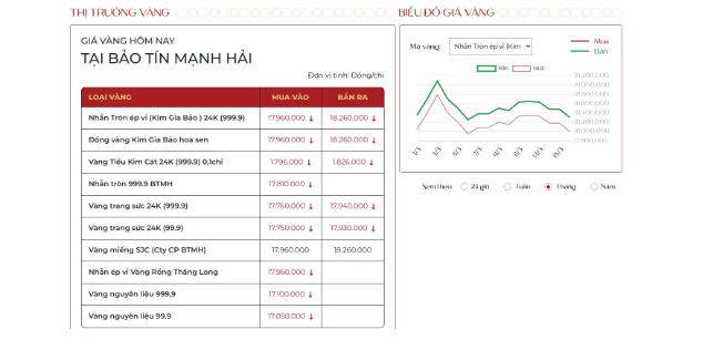 Đáng chú ý, Bảo Tín Mạnh Hải là một trong những đơn vị duy trì mức chênh lệch mua – bán khá hẹp so với thị trường chung, giúp nhà đầu tư giảm thiểu rủi ro khi giao dịch trong thời điểm giá vàng biến động mạnh.