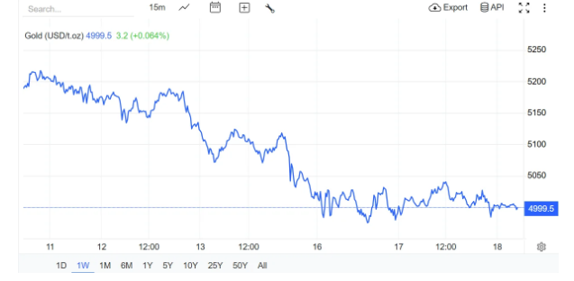 Giá vàng thế giới giao ngay chốt phiên tại thị trường Mỹ vào rạng sáng ngày hôm qua (giờ Việt Nam) ở quanh mức 5.000 USD/ounce, giảm 10 USD/ounce so với chốt phiên hôm trước đó.