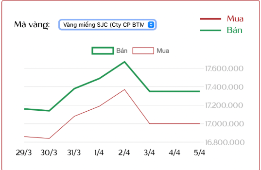 Theo báo An ninh tiền tệ đăng tải bài viết với tiêu đề: “Giá vàng SJC, vàng nhẫn ngày 5/4”, nội dung như sau: