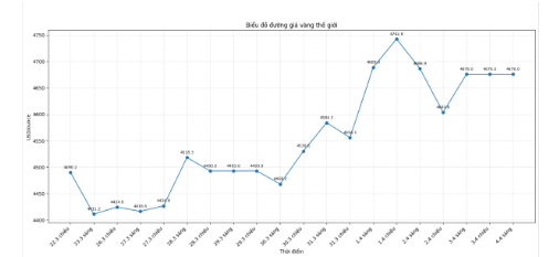 Trên thị trường thế giới, giá vàng duy trì quanh vùng 4.600 – 4.700 USD/ounce, chịu tác động giằng co giữa căng thẳng địa chính trị và kỳ vọng lãi suất. Dù tăng khoảng 3% trong tuần, vàng vẫn chưa thể vượt ngưỡng kháng cự 4.800 USD/ounce.