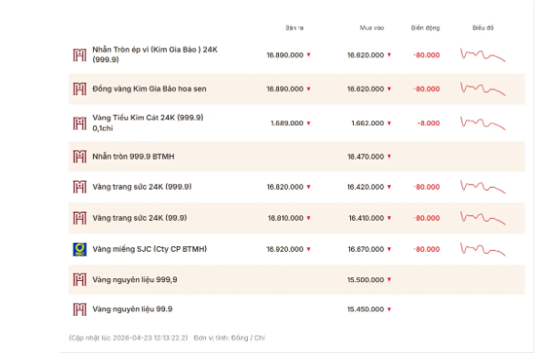 Theo báo Dân Việt đăng tải bài viết với tiêu đề: “Giá vàng hôm nay mới nhất (23/4) giảm mạnh: Người mua trở lại đông hơn, cửa hàng không còn bán vàng trên giấy”, nội dung như sau: