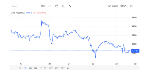 Giá vàng thế giới giao ngay trên thị trường châu Á lúc 13 giờ 30 phút hôm nay ngày 23/4 (giờ Việt Nam) giao dịch ở quanh ngưỡng 4.714 USD/ounce, giảm 17 USD/ounce so với cùng thời điểm hôm qua.