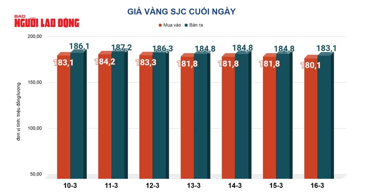 Báo Người Lao Động đưa tin với tiêu đề: “Giá vàng hôm nay, 17-3: Sụt giảm rất mạnh”, nội dung được đăng tải như sau: