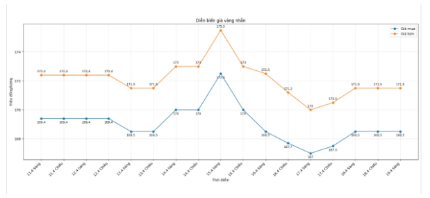 Diễn biến giá vàng nhẫn những phiên gần đây. Biểu đồ: Như Hạ