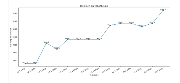 Trong suốt tháng 1, giá vàng liên tục chinh phục những cột mốc mới. Tính đến hôm nay, hợp đồng vàng tương lai đã tăng thêm khoảng 100 USD, có thời điểm vượt ngưỡng 5.180 USD/ounce.