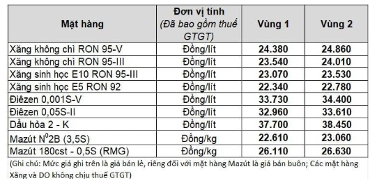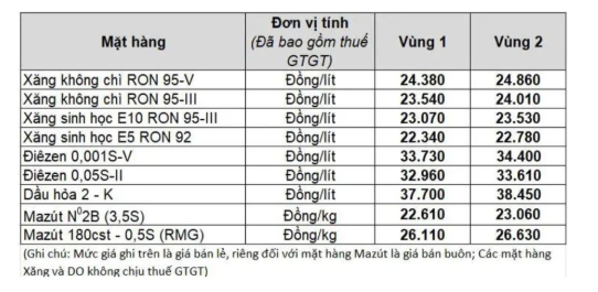 + Kho Bắc Ninh: Dầu Diesel 0,05S: 650 đồng/lít; Xăng RON 95 – III: 50 đồng/lít.
