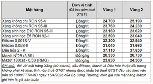 - Dầu mazut: không cao hơn 20.332 đồng/kg