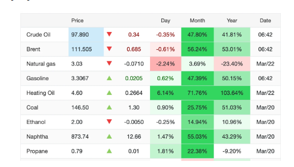 Dù có nhịp điều chỉnh nhẹ, dầu Brent vẫn vượt 110 USD/thùng, trong khi WTI áp sát mốc 98 USD, kéo theo làn sóng tăng giá của hàng loạt mặt hàng năng lượng.