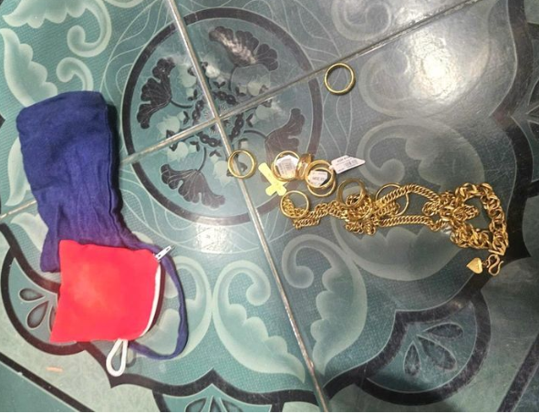Kiểm tra phòng ngủ, bà phát hiện tủ quần áo bằng gỗ bị cạy phá, toàn bộ tài sản cất giấu trong hộp nhỏ để bên trong đã bị lấy mất. Số tài sản bị chiếm đoạt gồm: 1 sợi dây chuyền vàng (10 chỉ), 1 sợi dây chuyền vàng (6 chỉ), 1 lắc tay vàng (5 chỉ), 1 đôi bông tai vàng (1 chỉ), 1 nhẫn vàng (2 chỉ), 1 nhẫn vàng (5 phân), 8 nhẫn vàng được cột lại với nhau (16 chỉ) và 1 sổ tiết kiệm. Tổng giá trị tài sản bị mất ước tính trên 600 triệu đồng.