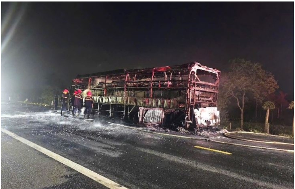Nhận tin báo, lực lượng Cảnh sát PCCC và CNCH Công an tỉnh Đắk Lắk đã có mặt tại hiện trường khẩn trương triển khai phương án dập tắt đám cháy. Tại hiện trường, xe khách giường nằm bị cháy trơ khung và hư hỏng hoàn toàn.