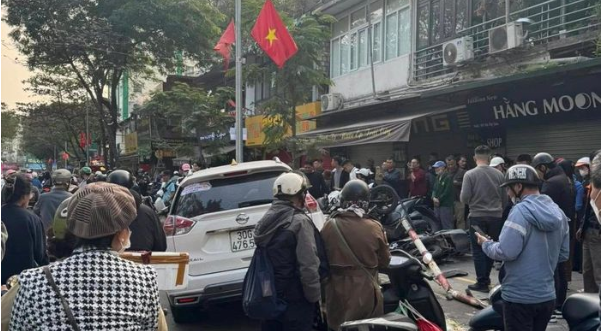 Ghi nhận tại hiện trường vụ tai nạn xảy ra tại phường Hai Bà Trưng (Hà Nội) chiều 1-1 cho thấy chiếc xe ô tô cá nhân do một phụ nữ điều khiển t:ông nhiều xe máy bị h:ư h:ỏng, có người bị th:ương nhẹ.