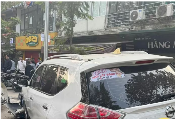 Vào thời điểm nêu trên, chiếc xe ô tô mang BKS 30G-476.xx bất ngờ tông trúng 6 xe máy đang đỗ trên vỉa hè phố Võ Thị Sáu. Chiếc xe cũng t:ông g:ãy đổ cọc biển báo ngõ ngõ 88 phố Võ Thị Sáu.