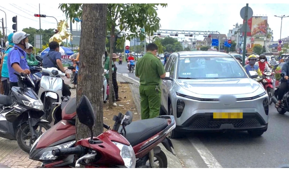 Nam tài xế taxi tử vong trong ô tô khi đang dừng xe trên đường Phạm Văn Đồng, phường Hiệp Bình, TP.HCM.