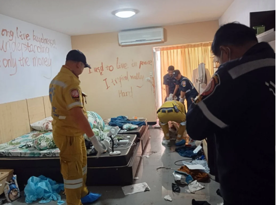 Cơ quan chức năng nhận định ban đầu, nhiều khả năng hai người đã xảy ra mâu thuẫn nghiêm trọng. Người đàn ông được cho là đã dùng dao tấn công bạn gái dẫn đến tử vong, sau đó tự gây thương tích, viết lại những dòng chữ bằng máu trên tường trước khi nhảy từ ban công phòng trọ.