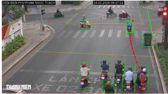 Hệ thống camera AI ghi nhận người đi xe máy vượt đèn đỏ tại giao lộ Điện Biên Phủ – Phạm Ngọc Thạch
