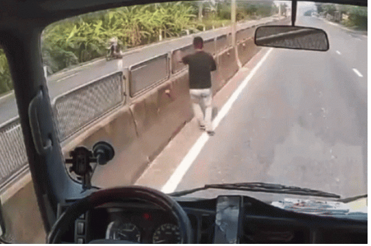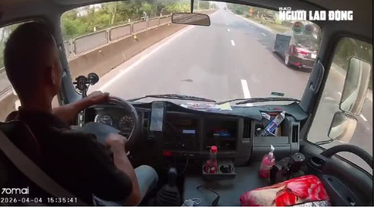 Tình huống trở nên cực kỳ nguy hiểm khi cháu bé chui qua khe hở của dải phân cách cứng để sang làn đường ngược lại, ngay thời điểm nhiều phương tiện đang lao tới với tốc độ cao. Nhận thấy tai nạn khó tránh khỏi nếu không can thiệp kịp thời, anh Tố lập tức nhấn phanh, liên tục bấm còi để cảnh báo các xe phía sau rồi nhanh chóng mở cửa cabin, lao thẳng ra giữa đường.